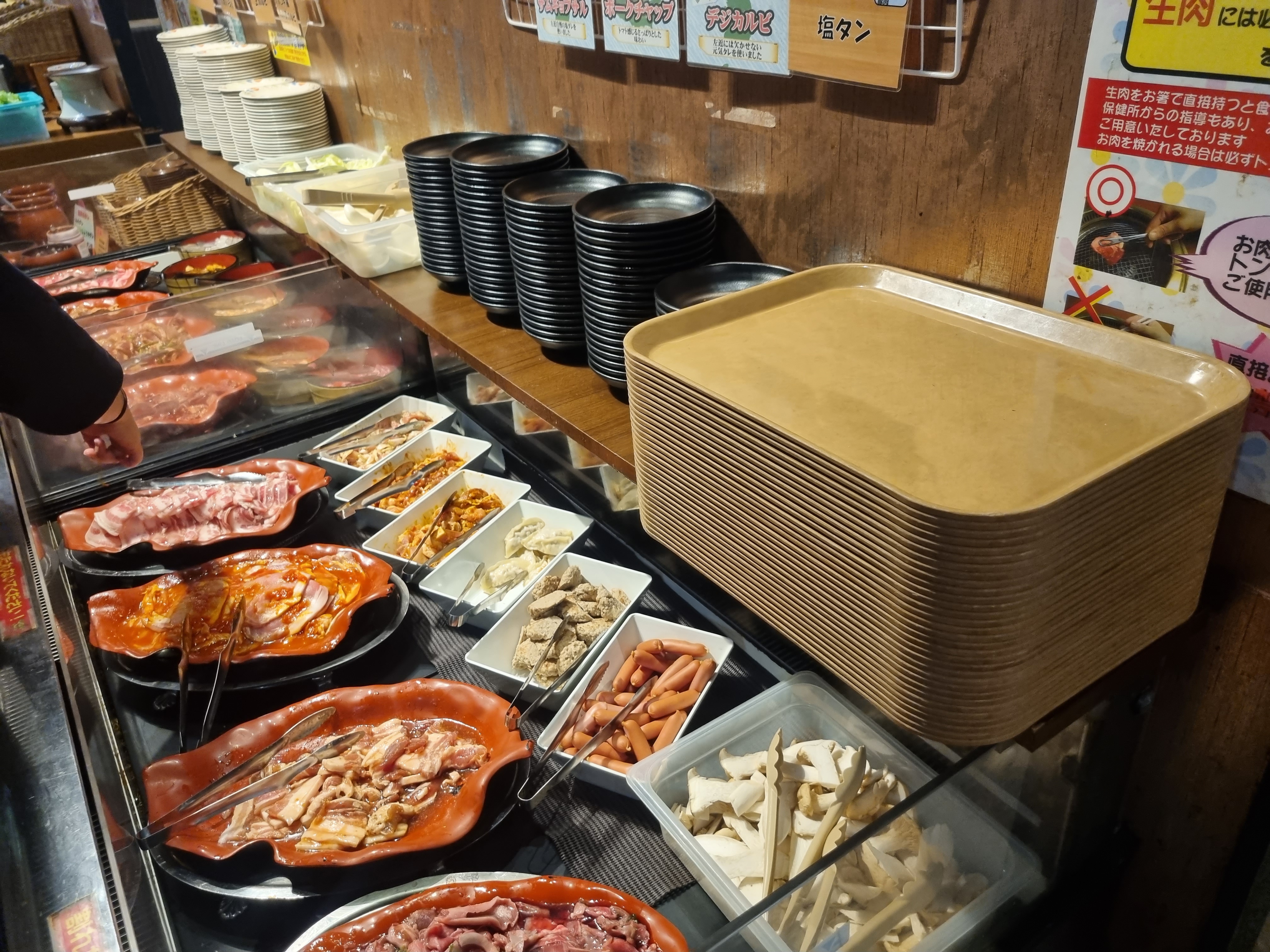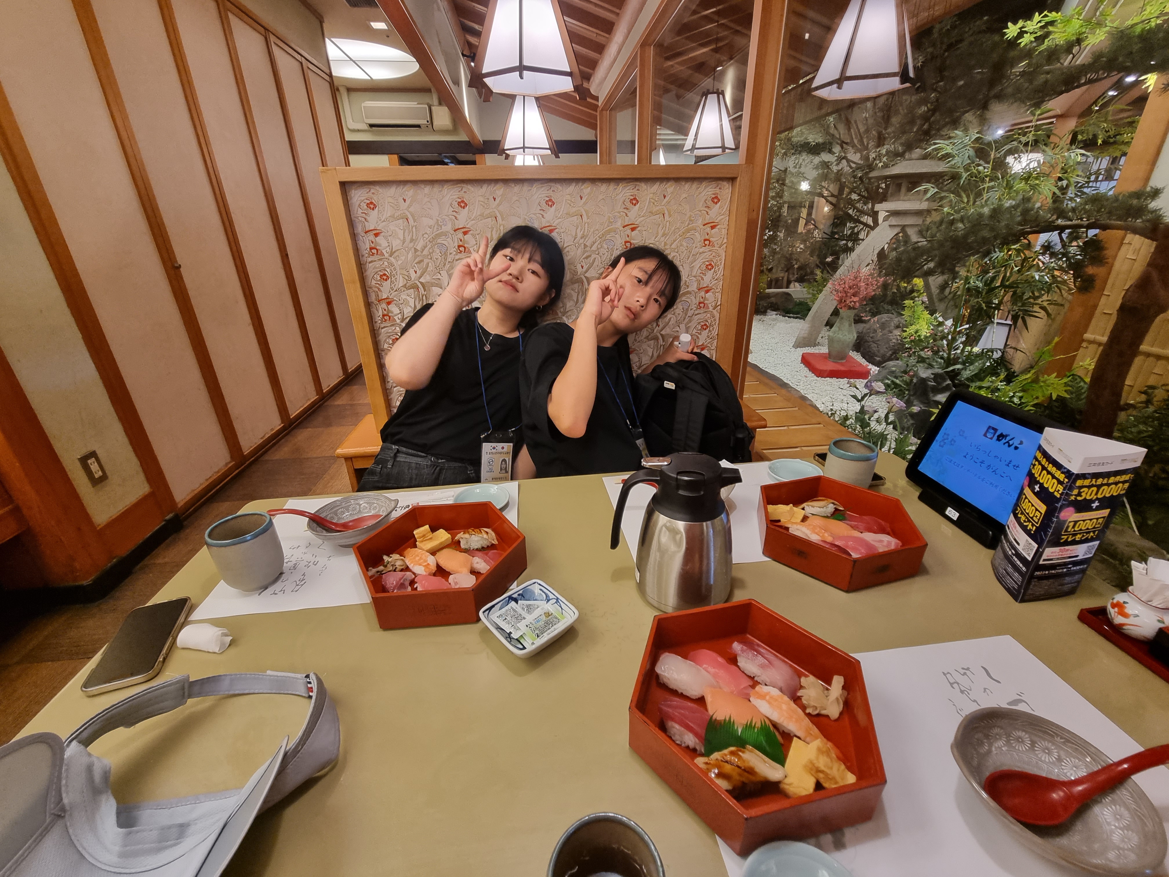 점심은 잠깐 나와서 맛있는 초밥을 먹고, 저녁은 맛있는 고기뷔페에서 고기를 먹었습니다.