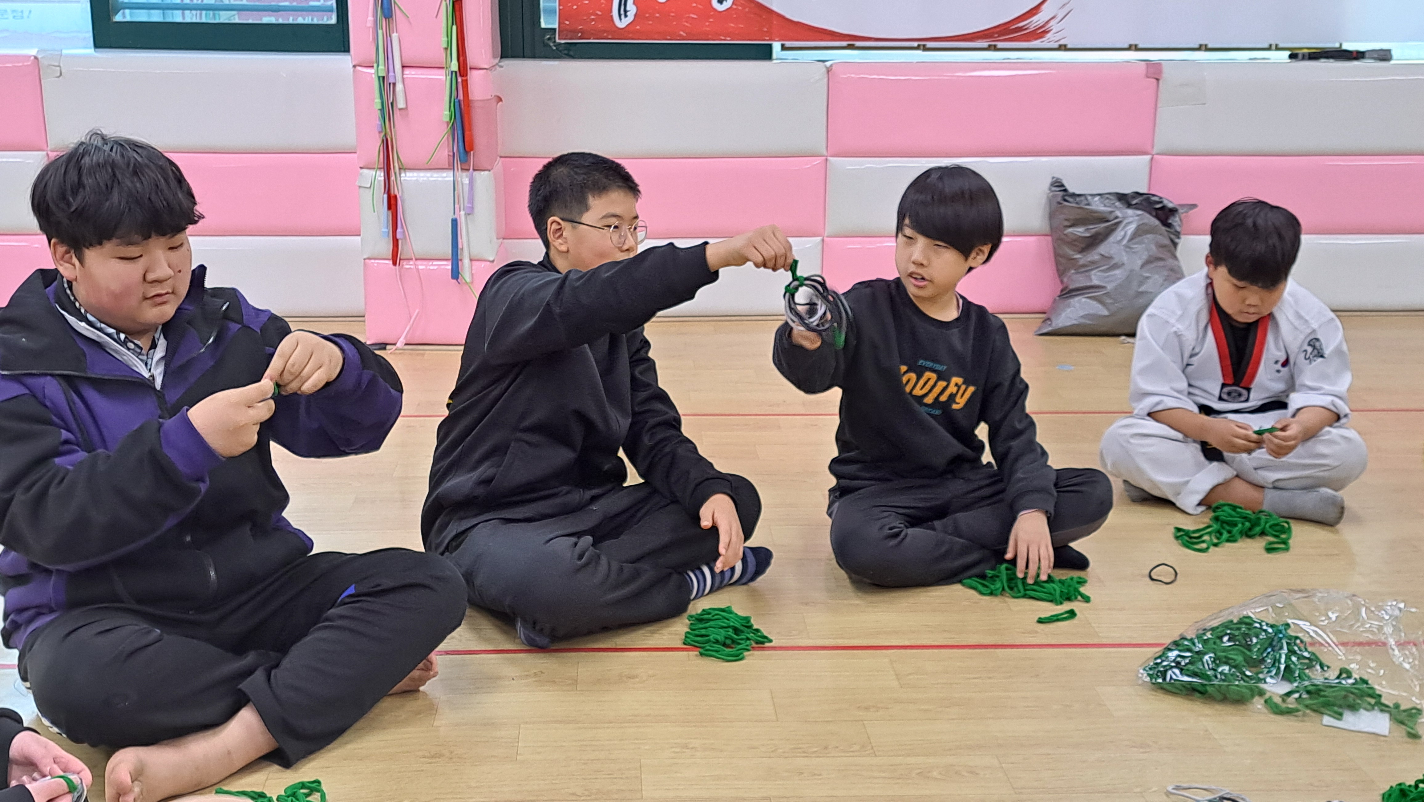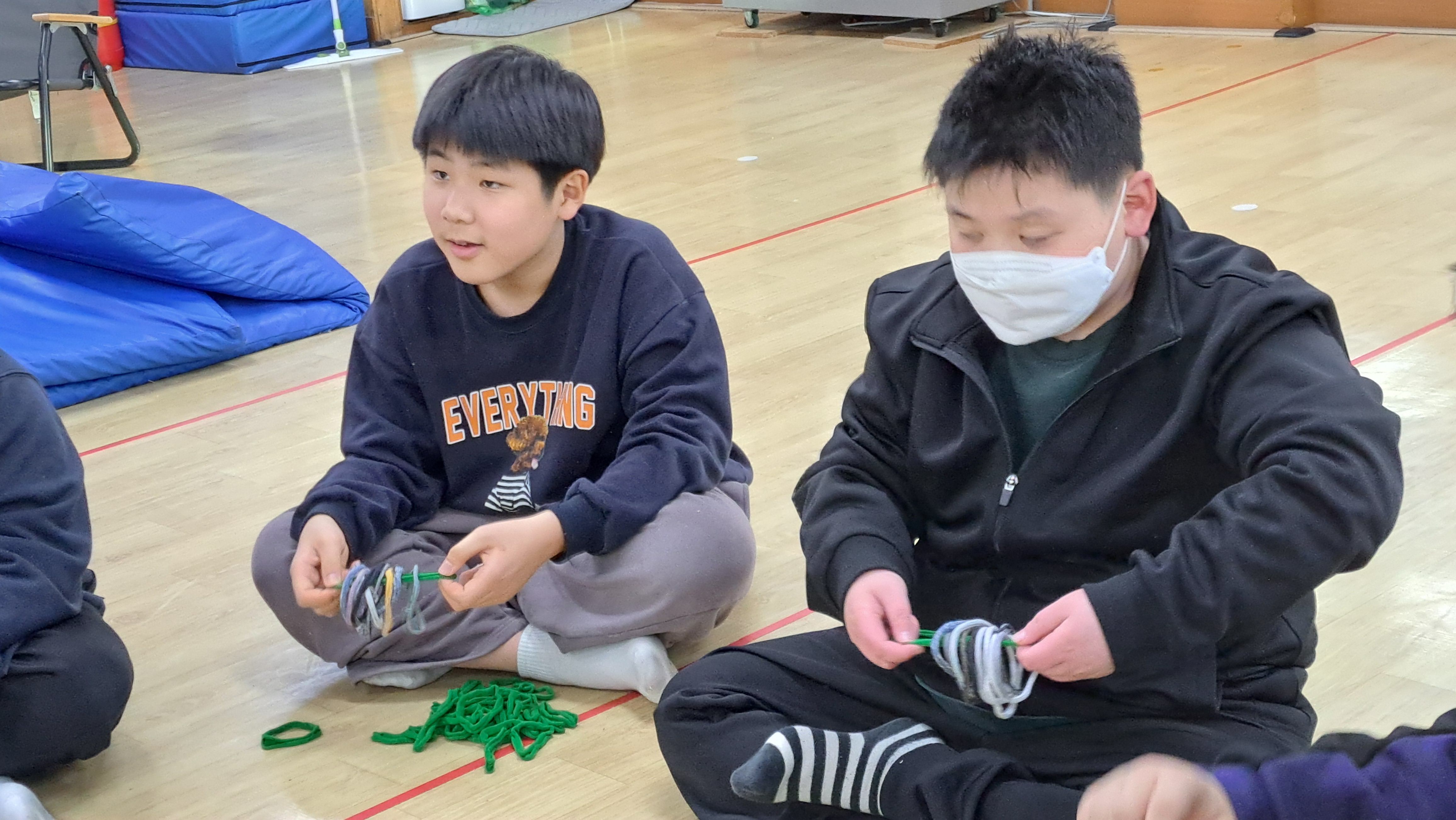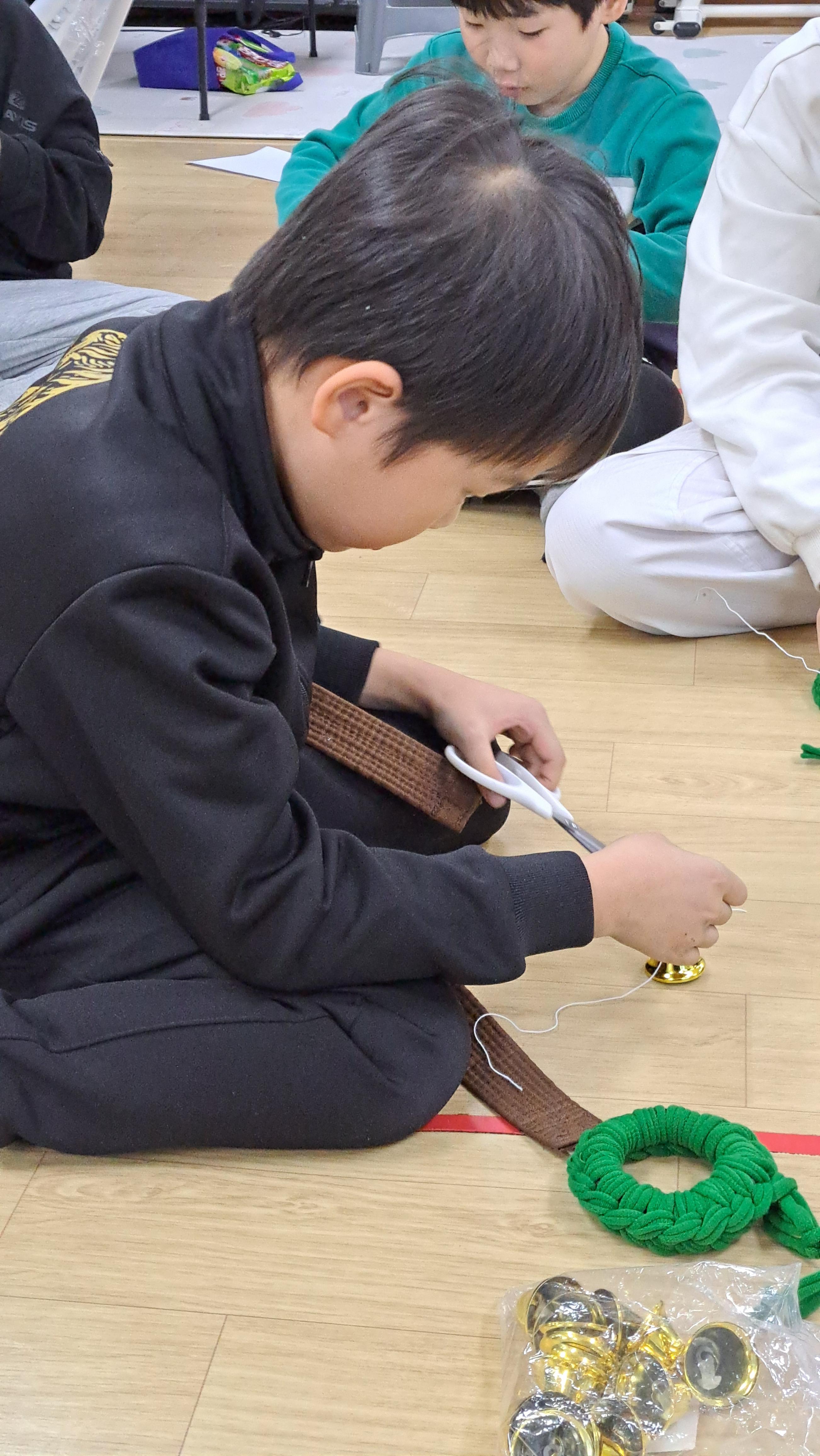 이번 2024년 12월 24일은 아이들과 함께 양말목공예로 원형트리 만들기 특강을 진행했습니다.