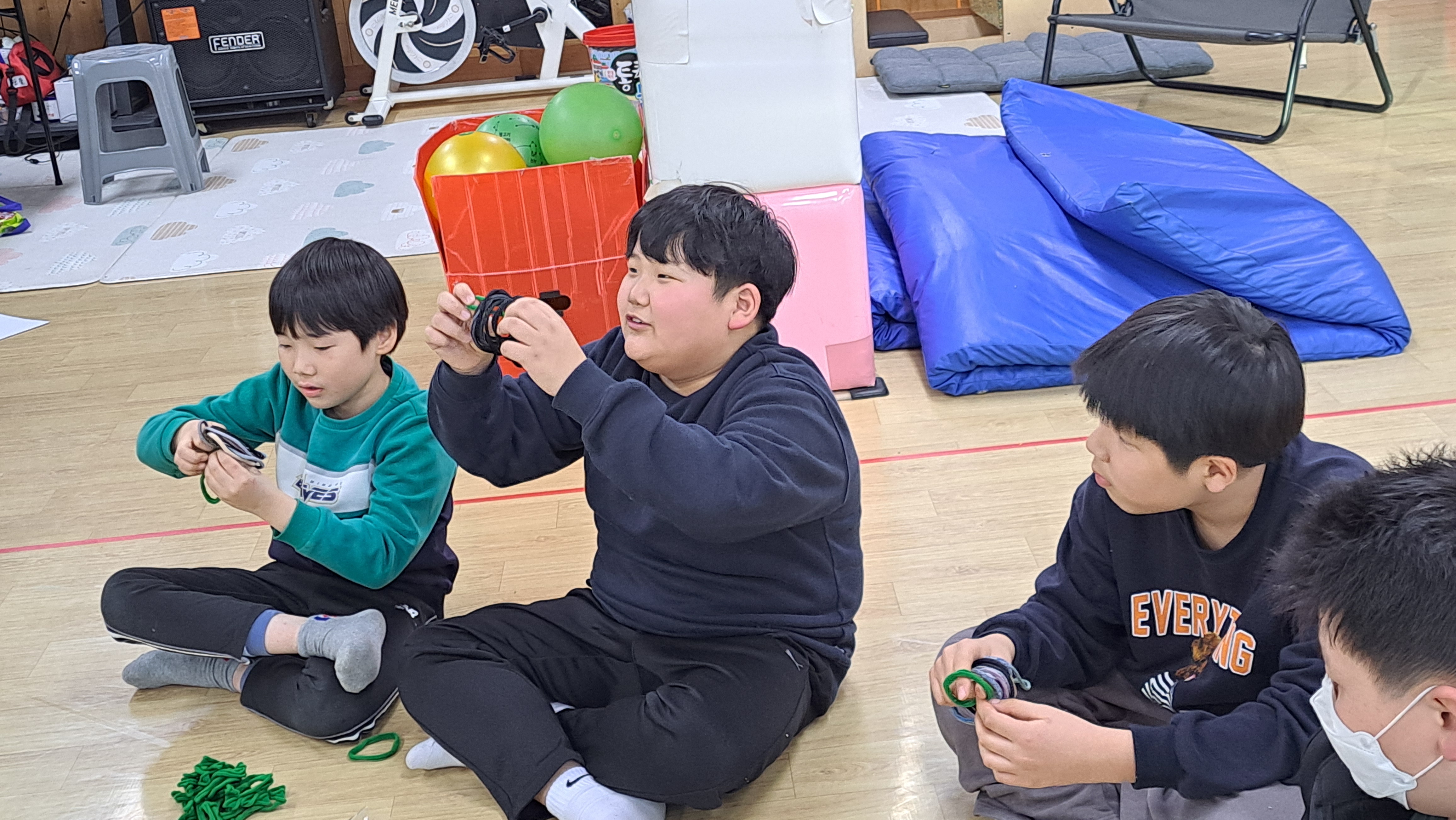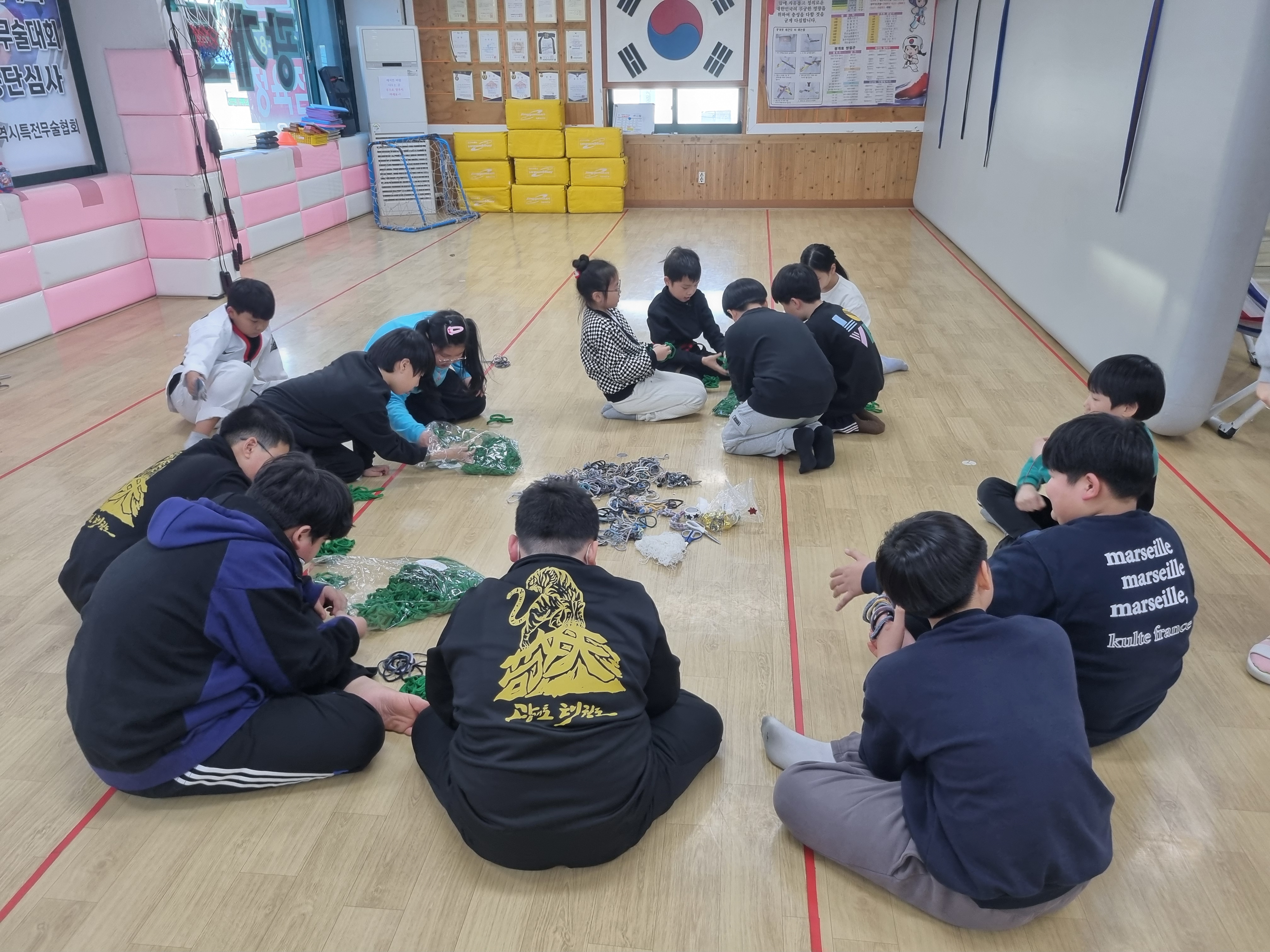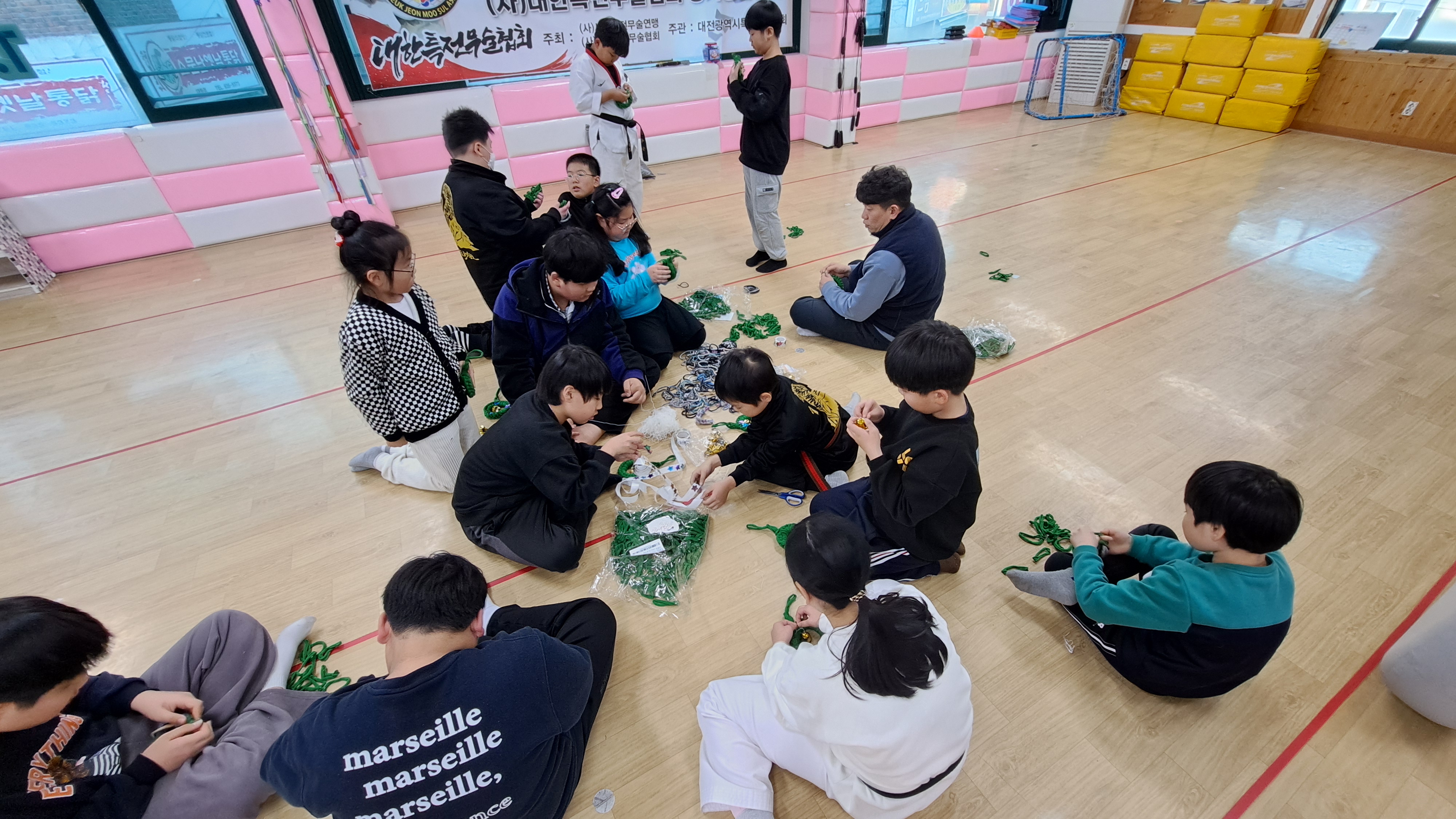 이번 2024년 12월 24일은 아이들과 함께 양말목공예로 원형트리 만들기 특강을 진행했습니다.