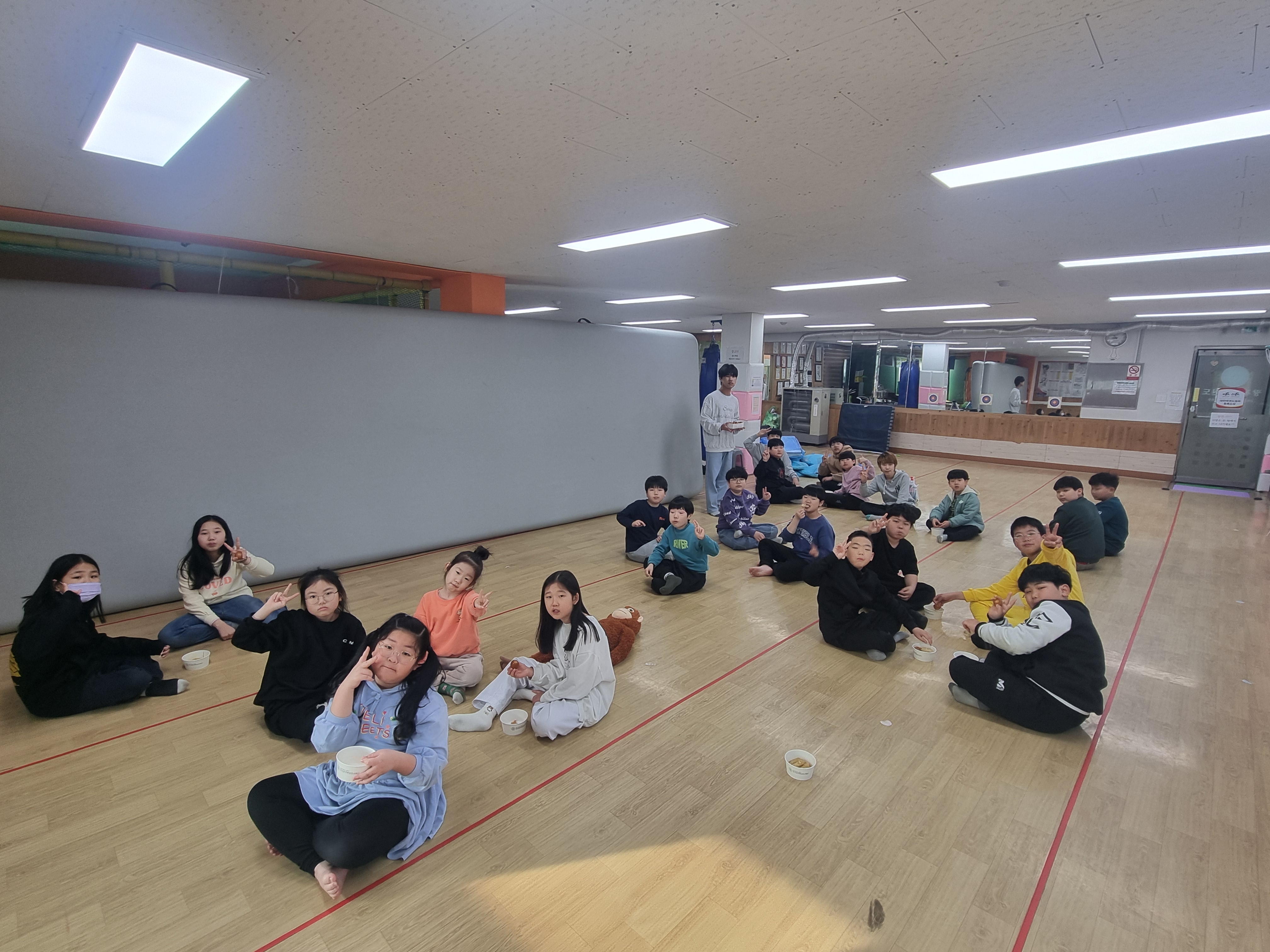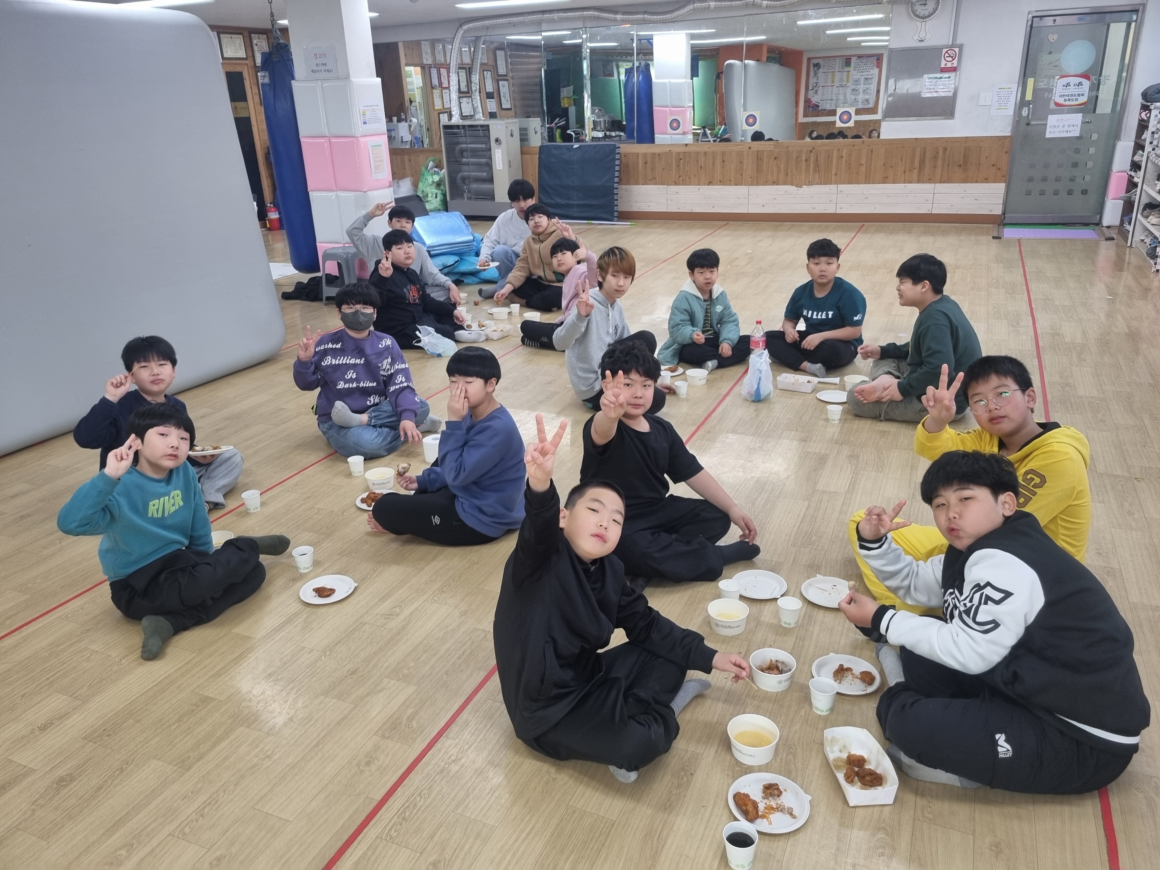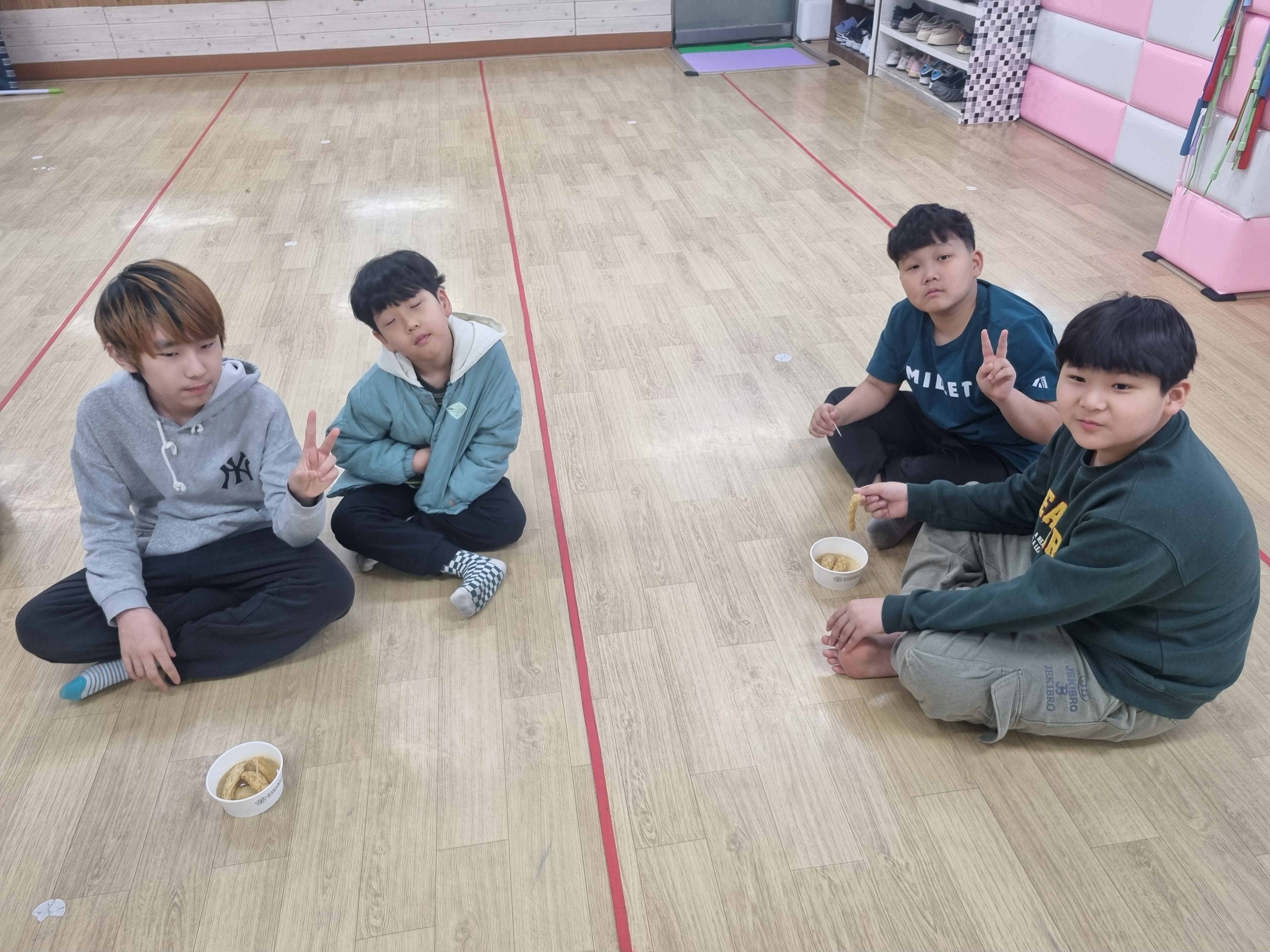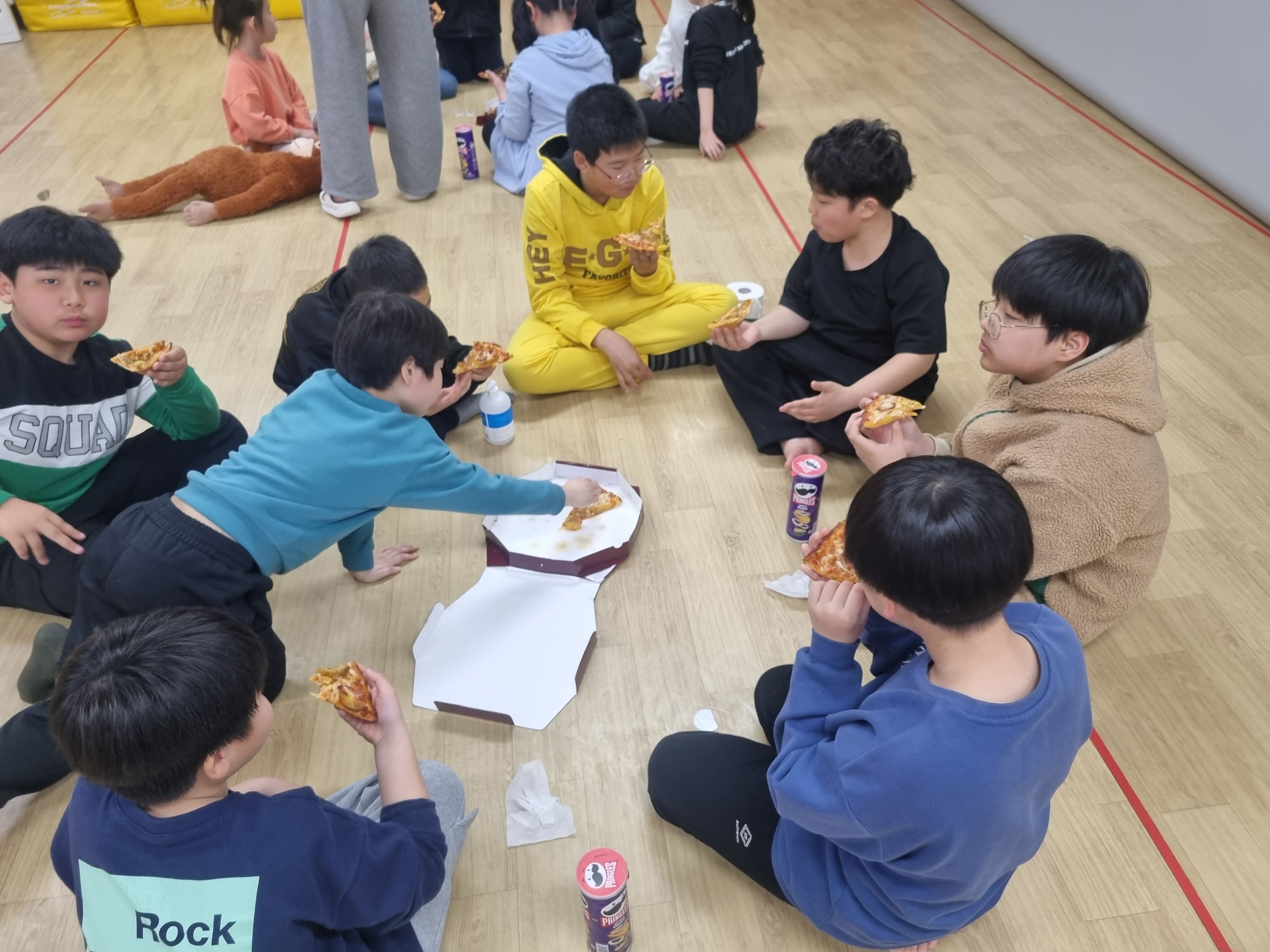 피구시합이 끝나고 1등한 팀에게는 관장이 1명씩 프링글스를 선물로 주었습니다.^^