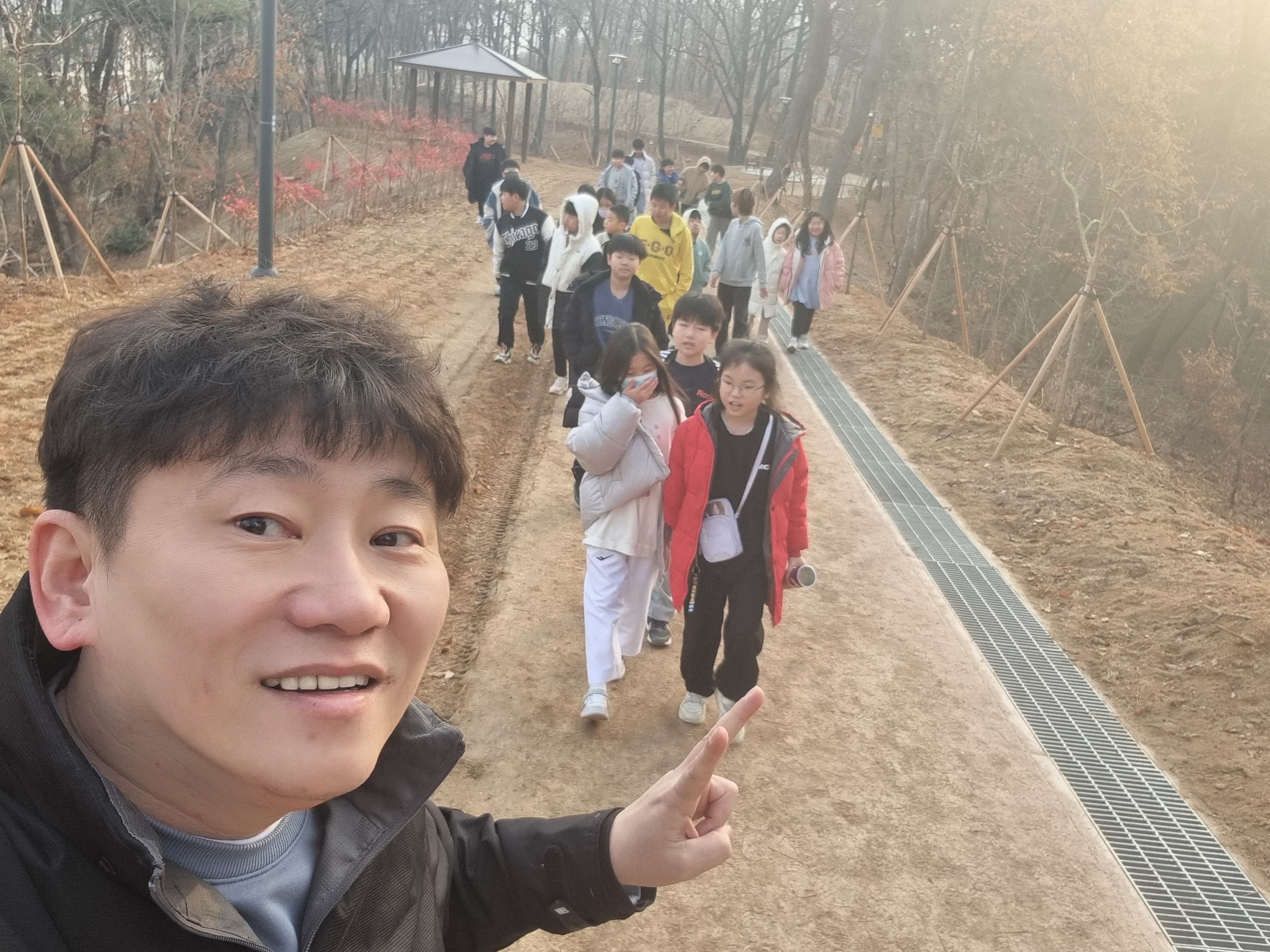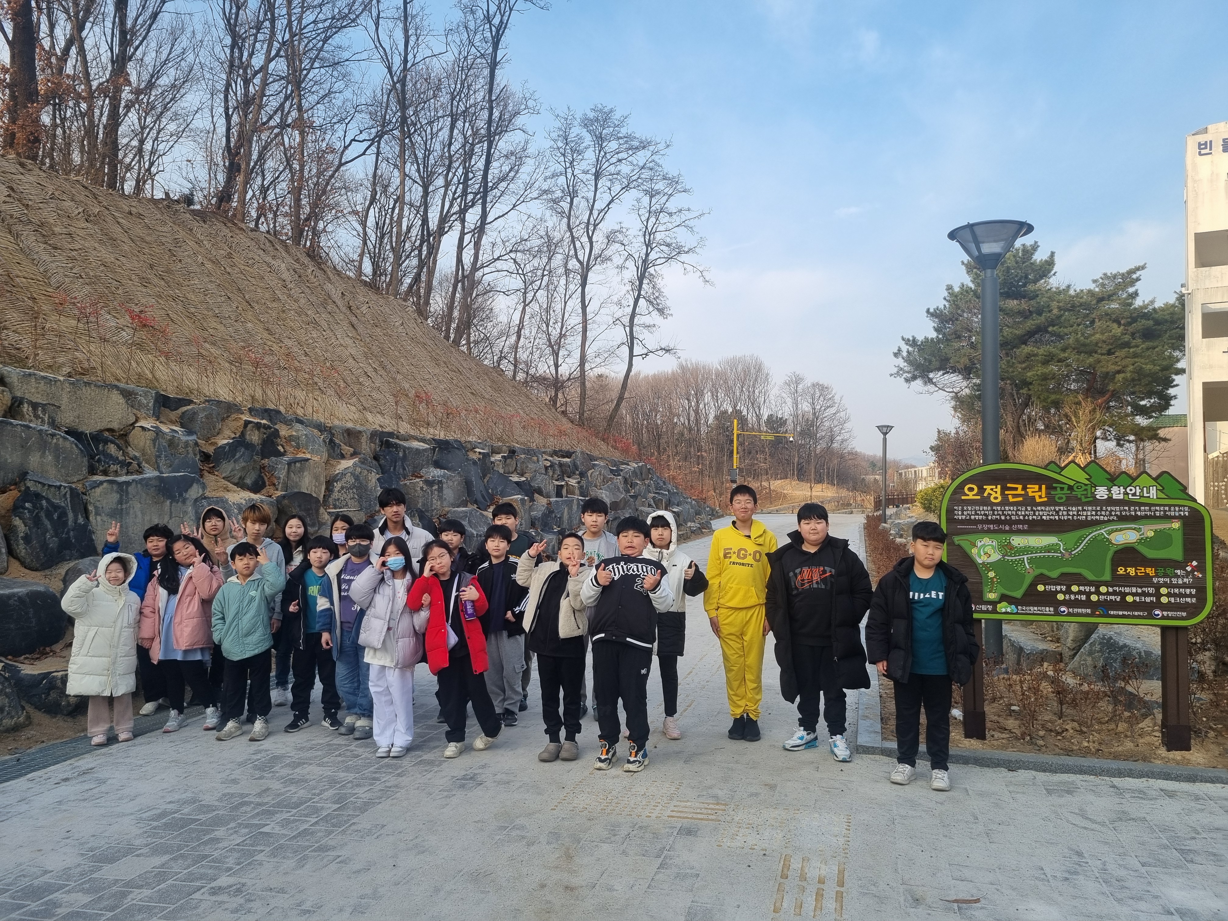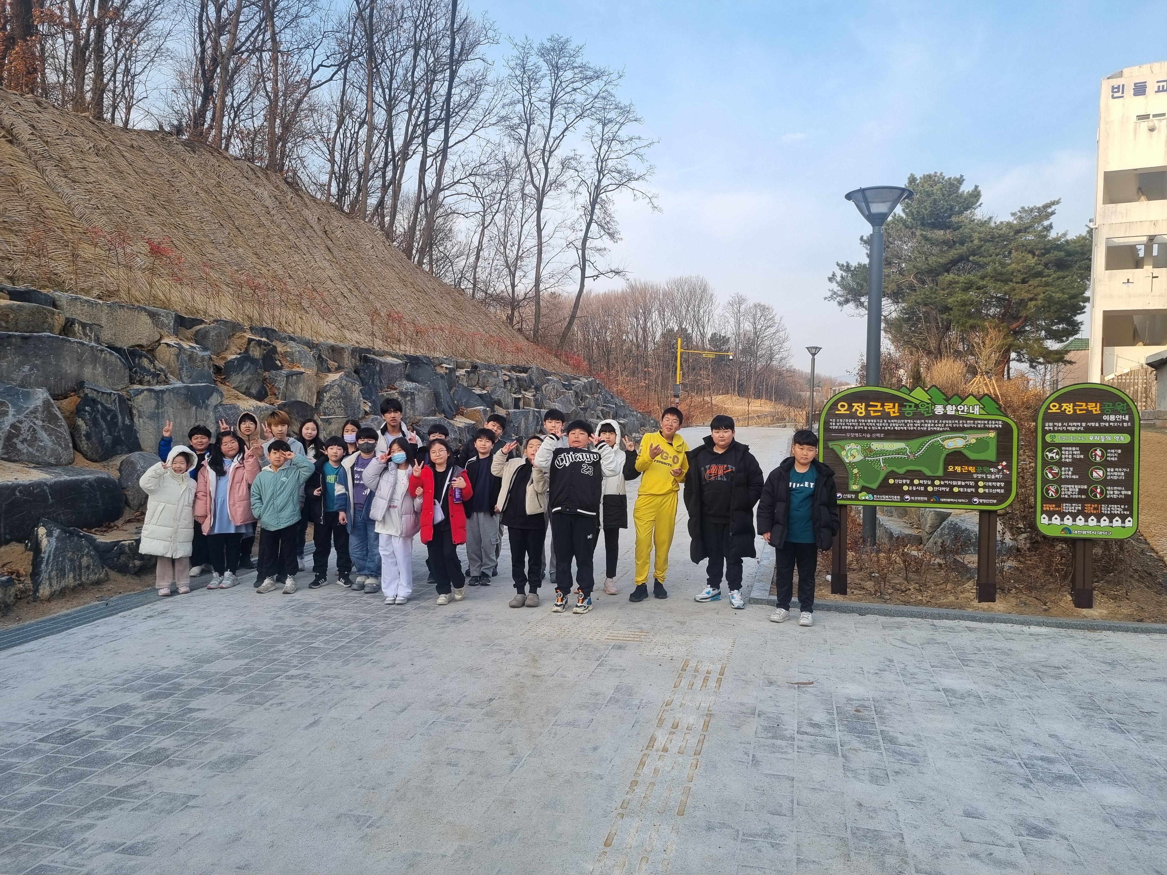 다음날 3.1절 아침에 일어나 태권도장 바로 옆에 새로 생긴 오정근린공원 산책을 진행했습니다.^^